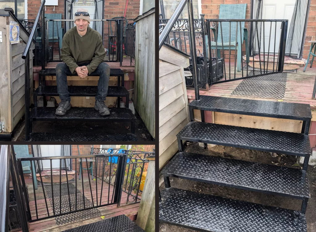 Aleksandr replaced wooden steps with sturdy, custom-made iron ones and crafted a beautiful gate for the porch. On top of that, he also built metal stands for our pantries, helping to protect them from water and snow.