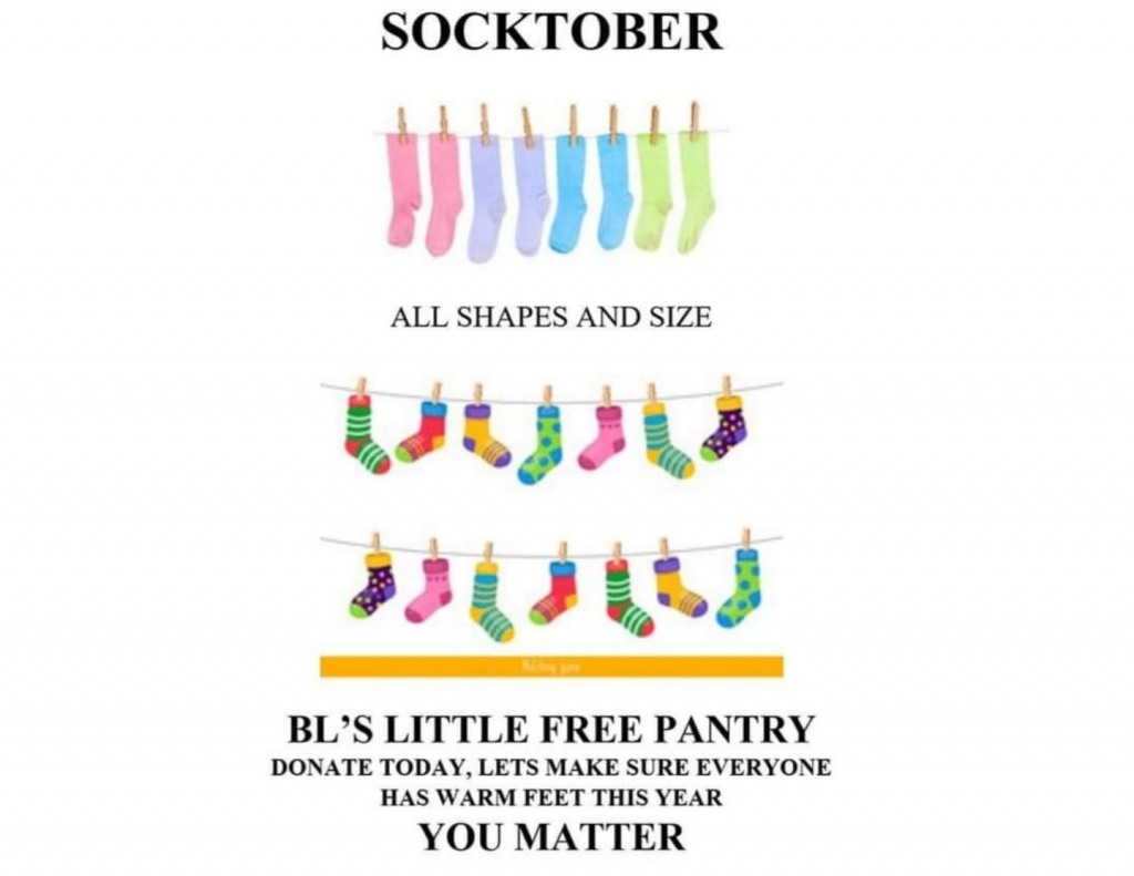 Help keep our community warm this season by donating socks of all shapes and sizes to BL’s Little Free Pantries! Every pair makes a difference, ensuring everyone has warm feet this year. You matter.